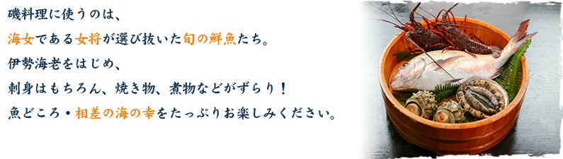 さらに ・伊勢海老お造り ・鮑お造り(バター焼きもOK) ※料理内容は季節や仕入れ状況によって変わる場合がございます。 ※調味料も色々取り揃えております。